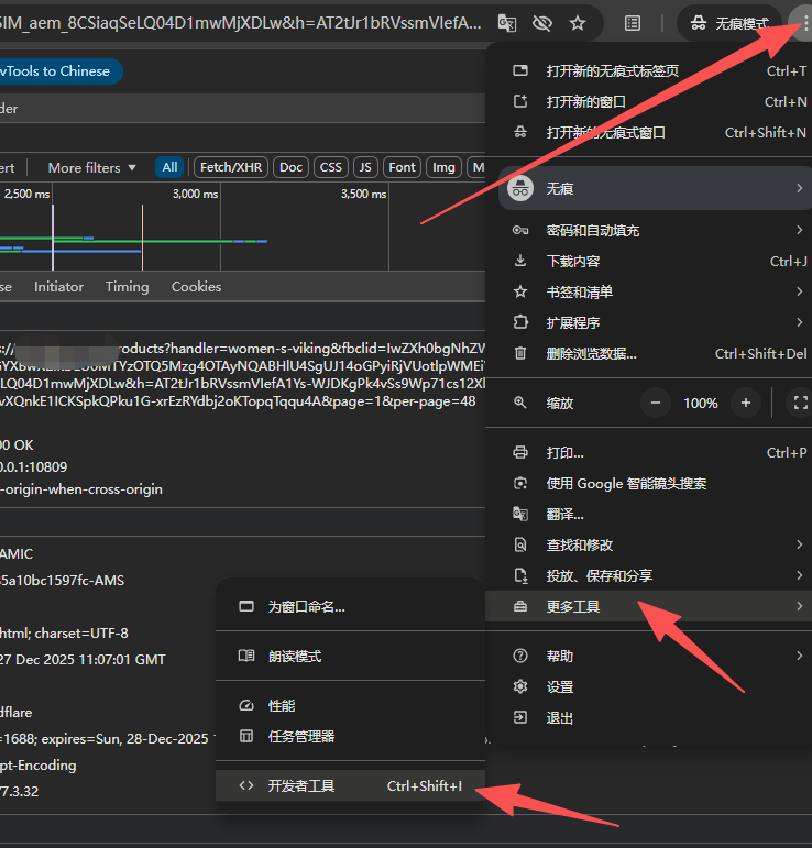 在谷歌浏览器打开【开发者工具】: