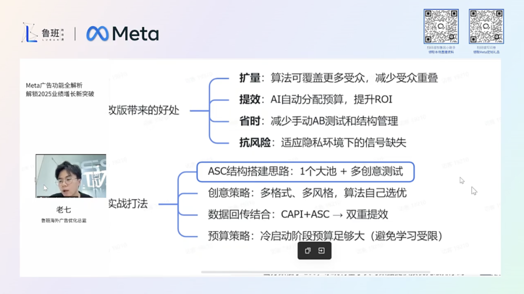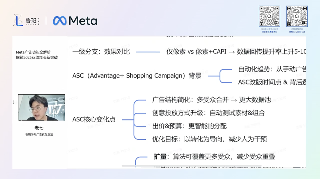 鲁班跨境通携手Meta,解锁跨境旺季增长密码 此前,Meta 携手鲁班跨境通为跨境卖家打造的《Meta 广告功能全解析:解锁2025业绩增长新突破》直播圆满落幕,不少小伙伴因日程冲突遗憾错过。为帮助大家精准掌握Meta 出海核心策略,我a们特别整理了直播关键内容,从Meta官方的流量优化到鲁班跨境通的实操落地,一站式拆解旺季增长要点,助力大家抢占市场先机。回看本期直播: https://qbjul.mk.xet.citv.cn/s/25tNNH Meta大中华区商业市场部市场经理 Yvonne Ng 为大家带来了《Meta 2025 Q5节日营销指南》,结合平台大数据与隐私新规,为从业者提供可落地的流量获取方案,核心内容聚焦三大维度: 1. Q5 营销机遇剖析 Meta 官方洞察到,2025年Q5(12 月 21 日 - 1 月 15 日)蕴含独特营销机遇。这一时期竞争环境相对宽松,大品牌因发货截止等因素离场,广告竞拍压力大幅降低。同时,高达 74% 的消费者在节日后仍保持购物热情,且移动设备使用时长显著增加。成本方面,千次展示费、单次操作费降至节日季最低水平,为广告投放实现高效转化创造了有利条件。 2. 自动化工具核心运用 自动化工具成为 Meta 官方力推的营销利器。进阶赋能型产品表现卓越,例如进阶赋能型销量广告系列,单次操作费降低9%;进阶赋能型应用广告系列,单次获取费降低7%;进阶赋能型目录广告系列,单次操作费相较于非动态广告降低16%。在使用这些工具时,开启进阶赋能受众,可使单次网站转化费降低 7%;合理运用版位(6 + 版位),单次转化费能降低5%;启用预算优化,单次操作费可降低5%,借助 AI 技术全面提升投放效率。 3. 创意策略革新 生成式 AI 工具在创意环节至关重要,已有400万 + 广告主运用,单月可生成 1500万条广告,经实践验证,点击率提升11%,转化量提升7.6%,支持扩图、文案生成等多元功能。创意多元化同样关键,视觉差异大的创意可使营销效率提升32%。此外,贴合 “新年焕新” 消费心态,借助 Reels(日分享量达 35 亿次,85% 用户观看后会关注商家)和创作者(92% Z 世代关注,71%用户看后几天内会购买)拓宽触达受众的渠道,有效提升转化效果。 鲁班跨境通:Meta广告实操策略助力业务增长 随后,鲁班跨境通海外广告优化总监老七,从 “数据回传 - 广告优化”两大模块,拆解 Meta 广告功能的实操要点,助力从业者将流量转化为实际业绩。 1. 广告数据回传新玩法:从追踪到增长 在IOS14 + 隐私政策的影响下,传统像素数据追踪面临缺失、精度下降等问题。鲁班跨境通指出,CAPI(Conversions API)可有效应对。CAPI 能从浏览器及服务器直接向Meta 传输数据,与像素互补,减少超 50% 的浏览器丢数,支持全链路转化追踪,且符合全球隐私新规。 部署方式多样,有技术团队的企业可通过 “CAPI Gateway” 对接服务器;也可借助Shopify 后台插件(如 Meta 官方 Shopify 插件)免费安装,轻松实现产品在Facebook、Instagram 的同步销售与数据回传。 关键事件追踪方面,需重点监测View Content(浏览内容)、Add to Cart(加入购物车)、Lead(潜在客户)、Purchase(购买)四大核心事件,技术与营销团队协同合作,确保数据及时、准确传输。实测显示,“像素 + CAPI” 组合较 “仅像素” 数据回传提升 5% - 10%,为广告优化提供坚实数据支撑。 2. 广告优化进阶解析:扩量与提效的实战打法 针对 Meta 广告自动化趋势,鲁班跨境通详细解析了 ASC(Advantage + Shopping Campaign)改版要点与应用策略。ASC 改版旨在解决受众重叠、预算浪费、素材测试低效等难题,尤其契合 Q5 旺季大流量场景。 其核心变化包括简化广告结构,合并多受众为大数据池,减少流量分散;升级创意投放,算法自动测试多格式素材并组合最优方案;实现出价与预算智能分配,依据转化效果实时调整资源;聚焦转化目标,减少人工干预。 改版后成效显著,扩量层面,受众重叠率降低 20%;提效方面,ROI 平均提升12% - 15%;运营效率大幅提升,减少手动 AB 测试与结构管理;同时具备更强的抗风险能力,能适应隐私环境下的信号缺失。 在实战应用中,建议采用 “1 个大池 + 多创意测试” 结构,内部设置 10 - 15 组不同风格素材,由算法选优;将CAPI 回传数据同步至 ASC,实现双重提效,尤其适用于Q5高客单价品类。预算策略上,冷启动阶段单广告系列日预算不低于500美元,避免算法学习受限;旺季中期可依据转化效果,将高 ROI 广告系列预算提升 30% - 50%,全力抢占流量高峰。 本期已为大家梳理了Meta Q5节日季营销与广告功能实操的核心要点,若需深入学习(如CAPI部署细节、ASC素材测试案例),可查看 https://qbjul.mk.xet.citv.cn/s/25tNNH 直播回放回顾完整内容。
