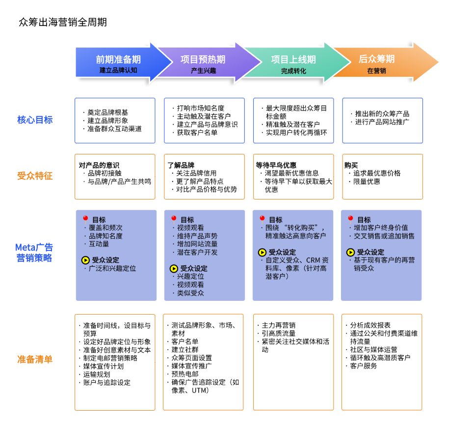 近日,专为水上拍摄打造的250克级无人机,在 Indiegogo 平台爆火!已汇聚1700+名支持者,首日上线破百万美元,更实现从10万到200万美元的跨越式增长! 该明星众筹项目的成功并非偶然,而是 Meta 广告体系与海外众筹全流程高度契合的典型体现。海外众筹的 “准备期—预热期—上线期— 后众筹期” 四个关键阶段,恰好能与 Meta 广告“品牌认知—兴趣—转化—复购”的营销漏斗形成精准匹配。通过 Meta 的精准营销工具与资源整合能力,品牌能在每个阶段锁定核心目标、触达关键受众,实现效能最大化,这也成为海外众筹项目突破增长瓶颈的核心密码。 雨果跨境精准赋能,全链路助力众筹出海破局 Meta 广告的精准策略需要专业的落地执行团队支撑,才能最大化释放势能。雨果跨境作为深耕海外营销的专业团队,围绕众筹出海全周期,打造覆盖“准备期—预热期—上线期—后众筹期”的完整服务体系。 准备期:夯实品牌根基,搭建增长基础 核心目标:奠定品牌根基、建立清晰品牌形象、搭建完善的用户互动渠道,为后续营销动作铺路。 受众特征:首次接触品牌,处于 “品牌认知萌芽阶段”,需通过核心价值传递与品牌调性展示,引发初步共鸣。 预热期:激活市场势能,积累种子用户 完成品牌根基的搭建与前期筹备后,项目正式进入预热期 —— 这一阶段的核心是将准备期积累的品牌基础转化为初始市场势能,精准触达潜在种子用户,为上线后的爆发储备动力。 核心目标:打响市场知名度、主动触达潜在客户、强化产品与品牌认知、获取高质量客户名单。 受众特征:已初步了解品牌,更关注品牌信用度、产品核心特点、价格优势及与同类产品的差异化价值,决策趋于理性。 上线期:集中引爆转化,冲刺众筹目标 当预热期成功激活市场兴趣、积累足够多的高意向潜在客户后,项目迎来关键的上线期,此时的核心目标从“积累关注”转向“集中转化”,通过精准营销冲刺众筹金额目标。 核心目标:最大限度突破众筹目标金额、精准触达高意向客户、实现用户转化的良性循环。受众特征:对产品有明确购买意向,重点等待早鸟优惠,渴望通过早下单获取最大折扣,决策周期短、转化意愿强。 后众筹期:延续品牌价值,助力 DTC 转型 众筹目标达成并非终点,后众筹期的核心价值在于延续项目热度,将众筹阶段积累的用户资产转化为长期品牌价值,为品牌从“众筹项目”向“成熟DTC品牌”转型铺路。 核心目标:推出新的众筹计划或迭代产品、推进品牌独立站推广、提升用户终身价值。 受众特征:已购买过众筹产品,对品牌有一定信任度,同时追求后续优惠福利(如限量折扣、专属权益),具备复购与推荐潜力。 Meta“宝石计划”专属支持,护航众筹出海 为进一步降低品牌众筹出海门槛、提升成功率,雨果跨境作为 Meta 官方代理商,可协助您向 Meta 申请加入 “宝石计划”,帮助您的项目获得专属权益与定制化支持,实现“精准赋能+资源倾斜”的双重加持。 专属账户权益,降本控险 流量扶持绿色通道:优先获取 Meta 优质流量,提升曝光效率,助力冷启动快速积累初始流量; 账户合规保障:专业团队实时监控广告合规性,规避海外政策与账号风险,确保投放稳定; 成长与资源支持:开放电商增长学院(对接 Meta 及实战专家)、共享高潜客户资源,可获广告测试代金券。 1v1 定制解决方案,全程无忧 针对项目品类、目标市场及预算,雨果跨境与 Meta 组建专属团队定制全周期营销方案(优化受众定向、本地化素材、动态把控投放节奏);精准解决冷启动流量、上线期转化瓶颈等痛点,全程助力达成众筹目标与长效增长。