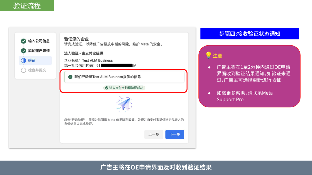 对于所有深耕Meta跨境投放的出海企业来说,账户稳定性、每日投放限额(DSL),永远是决定旺季爆单天花板、业务放量上限的核心命门。 近期,Meta正在针对中国广告主推出一项重要的账户验证测试:广告主企业身份验证——支付宝快速绿色通道。 本次支付宝验证试点,直接砍掉了冗余的资料堆砌环节,接入国内成熟的支付宝人脸+企业主体核验体系,用几分钟的极简支付宝验证,就能兑换长期、高阶、稳定的投放通行证。 本次验证是Meta进行的一项小范围试点测试,主要面向使用OE工具的中国广告主。简单来说,这是一次体验升级+风控强化的双赢尝试。做完验证,成功通过并合规的广告主,可获得平台激励(名额有限): 日投放限额大幅提升 最高可达30,000美元/天,起量更快、不受小额限制。 广告账户数量放宽 一个主体最多可开30个广告账户,多产品、多市场投放更灵活。 账户投放更稳定 提前完成合规验证,降低后续因身份问题导致的投放中断、账户受限风险。 整个验证流程被嵌入到OE工具的开户步骤中,不会额外增加太多操作负担: 左右滑动查看 只能营业执照上的法定代表人操作完成,不支持代办、不支持股东/员工替代。 ↕️上下滑动查看常见疑问解答↕️ 乘风破浪的广告主 Meta这次引入支付宝验证,说白了就是帮中国广告主“解限”。只要成功完成验证并满足合规标准,你就能拿到最高3万美元的日投放限额(DSL),一个主体最多能开30个广告账户——起量更快,多产品、多市场投放也更灵活。更重要的是,这是一次“一劳永逸”的合规操作——提前完成验证,不仅能避免后续因身份问题导致的投放中断,还能满足未来可能出台的各类监管或平台验证要求。 作为深耕中国企业出海服务十余年的专业伙伴,PandaMobo整合全球头部媒体资源,为客户提供从广告资产运维到全球商业策略的全方位、高颗粒度的一站式出海营销服务。夏季大促在即,PandaMobo将持续助力企业把握Meta等主流平台的红利机会,提供高质量投放支持,让传播更简单,让出海更高效——助您每一步都走得稳健、顺畅。 #出海营销 #Facebook广告投放 #Meta广告投放 #Instagram广告投放 #Meta #Facebook #Instagram #Meta广告账户支付宝验证 #跨境电商 #品牌出海 #游戏出海 #短剧出海 #应用出海