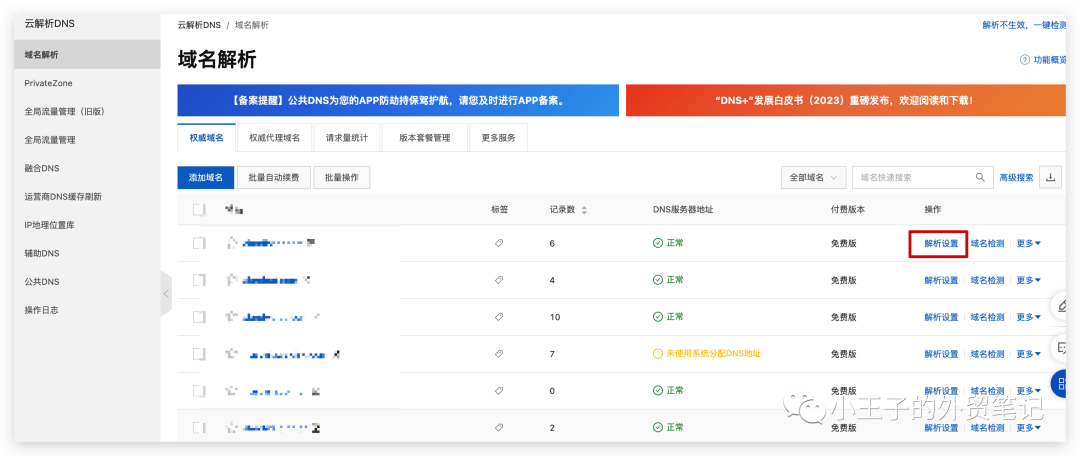 就会看到域名解析,然后添加域名,然后点击解析设置
