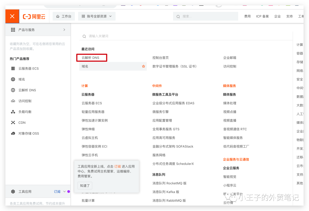 紧接着,在左侧找到DNS管理,然后点击DNS修改