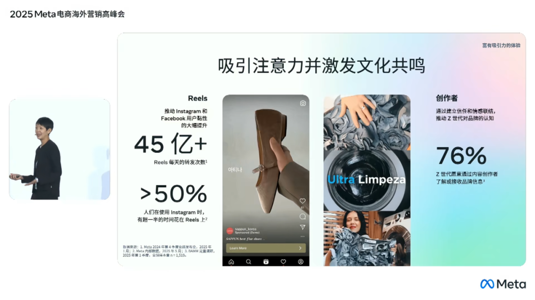 其他十余位Meta高层围绕AI赋能、跨境运营优化及创意营销创新三大核心领域发表主题演讲,深入剖析全球电商出海的机遇与挑战。他们分享了切实可行的工具与成功案例,为与会者提供了精准的市场洞察与战略指引,助力品牌在全球数字化浪潮中抢占先机,制定清晰的全球化发展路径。