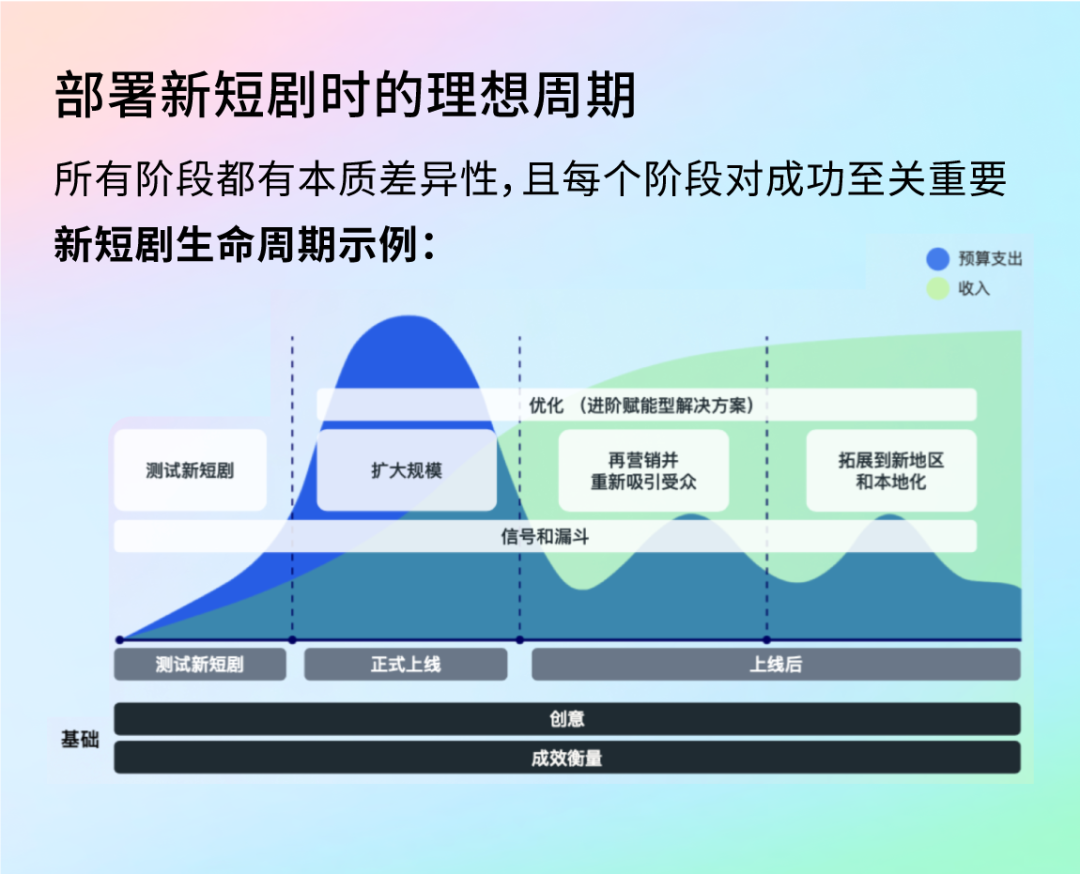 - 短剧厂商可参照以下周期,有条不紊地部署短剧出海营销,力求“花对钱,走对路”: