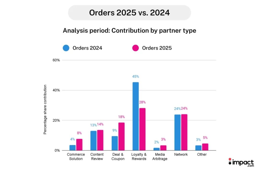 在刚刚圆满落幕的 iPX 2025 China 营销峰会上,Chief and Chaos 的创始人兼 CEO Matt Frary分享了他对北美消费市场的最新观察:北美消费者的购物链路正在明显拉长。过去“一见钟情就下单”的冲动消费正在退潮,如今他们会花更多时间比价、查阅测评、对比优惠。可靠数据显示,平均一个消费者需要经历至少17 个触点才会真正完成购买。从品牌认知、内容种草、网红营销,到最后的转化,每一个环节都可能影响最终结果。这种“慢下来”的消费趋势,正在重塑整个行业生态的合作格局。 同时,宏观环境的压力也在加速这一转变。Morgan Stanley预测,2025 年美国消费增速将从去年的5.7% 放缓至3.7%;另有32%的消费者已因关税预期调整了支出习惯。看似保守甚至收缩的消费态度,并非“退场”,而预示着消费者正在转向更加审慎、更强调信息验证的购物方式。消费者并没有减少消费,而是把购物当作一场更长周期、更精细的研究。 (图片来源:视觉中国) 为了更好地理解这一变化,impact.com 跟踪拆解了1,554个北美消费品牌的关键业务指标(2025 年 1–6 月 vs. 2024 年同期),从归因模型、合作伙伴类型、品类行业、季度波动四个角度,全面勾勒出消费旅程延长背后的逻辑。这些洞察旨在为品牌在新环境下的营销与合作策略提供直接的趋势参考与实战启发。 01 Last Click失准, 谁在真正触达用户? 过去,品牌大部分依赖“last click”归因模型,把转化完全归功于最终触点。但正如Matt所提到的:现如今北美消费者在真正完成购买前,平均会经过17个触点。 本次研究的数据还进一步显示:2025 年上半年,北美市场的点击量同比增长18%,订单量增长12%,但转化率下降了5%,AOV下滑10%。消费者明显在“量”上更活跃,但在“值”上更保守,他们更愿意多次进行小额、低价、计划性的购物,而非一次性的大额冲动消费。这并不是“需求消失”,而是“节奏改变”——他们需要更长的研究期,直到找到理想的时机和信号。 这种趋势下,如果品牌继续用“last click”的视角,就会把转化率下降解读为“投放无效”,从而削减预算。但事实恰恰相反:消费者在研究期其实已经被多次触达、反复教育,最终落地的那一下并不能代表整个链路的价值。 因此,多触点归因正在成为新的必修课。它要求品牌完整追踪消费者在各个环节的互动:哪些触点负责拉开序幕、哪些触点提供信任背书、哪些触点制造临门一脚的动因。在延长的购物旅程中,每一个环节都值得被衡量和投资,而不是单纯押注最后一步。 换句话说,品牌需要从“单点转化”切换到“全链路经营”,更有针对性地分配资源:在种草期加大内容和创作者合作,在研究期强化比价工具与专家评测,在临近转化时通过优惠和奖励触发行动。这样,即便消费者的决策需要经历十几个触点,品牌也能始终保持在线,持续影响最终的购买决策。 02 合作伙伴生态洗牌, 谁在赢得消费者? 与此同时,传统依赖“快决策、快转化”的合作伙伴营销模式也遇到了挑战。过去,返利或积分往往能快速驱动下单,但如今,消费者更愿意等待触发购买的最佳时机。这意味着,单一渠道已难以覆盖整个复杂的决策路径,合作营销的生态正进入新一轮重构。 Loyalty和rewards类营销伙伴的订单份额从去年的45%下降到28%,佣金份额也收缩到21%,但这并不意味着消费者完全放弃了会员积分或返利,而是这些机制不再是主导性的购买驱动力; Deal和coupon类营销伙伴正在崛起,订单份额从 9%翻倍至18%,佣金支出上升至14%。在研究驱动的链路中,这一类伙伴的优势在于既能提供价格验证,又能制造促销触发,正好契合了消费者在研究期需要“再确认”的心理。 值得注意的是,content review类营销伙伴订单份额虽然保持在14%,佣金份额却跃升至26%,成为所有伙伴类型中最高。这说明品牌在延长的决策周期里更愿意把预算投入到内容测评、专业评测和比价网站上,让消费者在研究阶段就被“教育”和“种草”。 Network类营销伙伴的发展稳中向好,订单份额维持在24%左右,点击份额甚至从38%提升到48%,它们依旧是消费者进入购物旅程的重要入口,承担着流量分发和转化前期的稳定支撑角色。 (图片来源:impact.com) (图片来源:impact.com) 从整体来看,合作伙伴生态正在从“单一依赖”走向“组合打法”:内容 → 价格验证 → 促销触发 → 忠诚度收口,形成一个更完整的覆盖全链路的协作网络。品牌需要同时调动不同类型的伙伴,各司其职: Content review类伙伴(测评媒体、KOL、对比网站、垂直博客)正在取代“广告话语权”,成为消费者决策链路的第一步。如今的消费者在购买前更倾向于做功课,详细的产品评测文章、功能价格对比表,真实的创作者体验视频,都能显著影响他们的信任感和选择。品牌在这一环节的投入,不是短期的“曝光换点击”,而是长期的“教育”:帮助用户减少信息不对称,提供客观价值验证,最终让品牌在研究期获得更高的存在感。 Deal和coupon类伙伴在延长的消费旅程中,承担了“临门一脚”的关键角色。当消费者已经浏览、研究、比价多次后,往往还需要一个明确清晰的触发点,而折扣、返利、限时优惠正好提供了这种确定性。它们既满足了消费者对价格验证的心理需求,又能制造行动的紧迫感,把“犹豫”转化为“下单”。 Network类伙伴为品牌提供稳定、可预测的流量池,让后续的内容教育、比价研究、转化触发都有发挥空