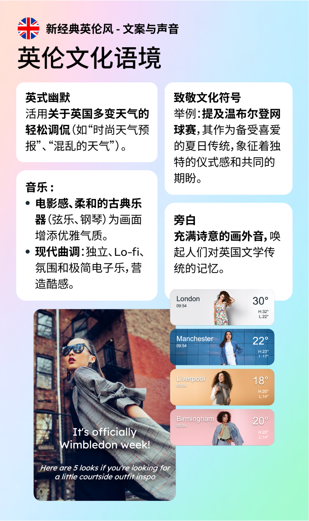 在出海过程中,广告主常常遇到这样的问题:一套在某个市场表现优异的广告素材,换到另一个市场却效果平平。 随着业务扩展,如果一直用同一套素材,很容易和当地用户产生隔阂,难以共鸣。 原因在于,好的创意不仅要有视觉冲击,更要与当地文化产生连接。创意本身没问题,关键是是否触动了目标市场的文化。 洞察,而非潮流:创意的长效保鲜剂 为了解决这个难题,我们需要将目光投向比短期潮流更远的地方,探索更深入的本地化创意洞察。 这意味着,比起追逐下个季度的流行色或本月的热门梗,我们要做的是深入挖掘一个地区长期形成的、根植于其文化价值观的深层密码。 我们通过三步走的策略,深入探索了澳、英、法、德四大市场的文化基因: 网罗当地达人: 联动网络当地达人,沉浸在各大社交平台,去挖掘那些真正在当地人中引起疯传和共鸣的爆款广告。 对话行业专家: 与本土的创意专家进行深度访谈,探寻行业风向的变迁,解密本地与全球品牌打动用户的秘诀。 解码文化符号: 将广告中的关键元素进行解构,洞悉其背后由文化和行为驱动的深层含义。 澳大利亚:舒适与真实 澳洲的创意风格往往与他们舒适的生活方式和壮丽的自然环境紧密相连。这里的时尚准则被多元文化塑造得格外包容和松弛。 广告创意如果能展现出对诚信品牌、天然材料的支持,或是拥抱本土、道德和可持续的价值观,往往能获得更多好感。 以视觉呈现为例,在场景方面,画面多采用自然光,摄于后院、海滩、停车场等生活化场景;在造型方面,穿搭多为宽松舒适,营造出悠闲、自在的氛围。 英国:传统与现代 英国的风格植根于其独特的阶级历史、英伦传承和丰富的亚文化。这里的消费者推崇慢时尚,相信质比量更重要,一个精心挑选的衣橱远比塞满快消品的衣柜更具吸引力。 因此,强调手工艺、道德时尚和耐用性的创意,正日益受到青睐。 以文案为例,可以融入英式幽默,活用关于英国多变天气的轻松调侃,如“时尚天气预报”、“变化莫测的的天气”。 法国:低调、自在的时尚 法国风格是其深厚文化底蕴和个人品味的完美体现。这里的人们拥有与生俱来的艺术和时尚传承,消费时更趋于理性。 他们青睐那些值得投资的、可以长久穿着的经典单品,秉承“质量比数量更重要”的理念。环保奢侈和经得起时间考验的质感,是通往他们内心的钥匙。 以文案为例,文字的语调需要在高奢与亲和之间取得平衡,强调服装带来的体验和心境。 德国:低调、务实的精致 德国的风格微妙而目标明确,常常与专业和高效挂钩,这深受其工程思维和对精准度追求的影响。 这里的消费者进行的是深思熟虑的计划性购买,极其重视产品的耐用性和经典不过时的设计。强烈的环保意识和惜物文化也让慢时尚在这里深入人心。 以视觉呈现为例,在摄影风格方面,建议采用简洁、高品质的摄影,聚焦于产品本身及其卖点;在背景/环境方面, 真实的生活化场景(如骑车上班、雨中漫步、在床上醒来)更能引起共鸣。 每个市场的文化基因都像一座宝库,等待着有心的广告主去探索和挖掘。当创意与文化深度融合,便能爆发出惊人的能量。想要更深入地了解这四个市场的创意秘诀,让下一次出海营销的创意更生动、更打动人心吗? 扫码即可下载我们精心准备的完整版报告 《澳、英、法、德四个市场的本地化创意洞察》,开启全球化创意新篇章!