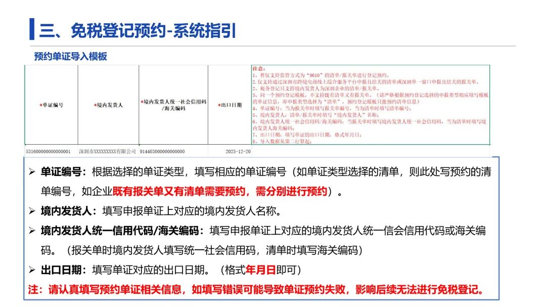 企业可通过综服平台办理“无票免税”登记,实现全流程电子化操作。 注意:企业须在出口货物结关后,至少提前2个自然日进行预约登记,系统将于预约后的第3日(T+2)开放数据确认功能。 通知中还强调:市商务局从未委托任何第三方机构代理“无票免税”登记相关操作,请企业通过综服平台自行办理。 目前,这个“无票免税登记”系统通道,仅面向跨境电商: 9610出口清单/报关单的境内发货人 生产销售单位、报关单表头备注的实际卖家(统一社会信用代码) 清单商品项备注实际卖家(统一社会信用代码) 同时注意几项: 1、仅支持通过深圳市跨境电商线上综合服务平台申报且结关清单或深圳单一窗口申报且结关报关单的深圳企业。 2、采取“委托代理”方式出口的,代理报关主体(即境内发货人)亦须为深圳企业。 3.在报关单/清单申报时企业需注意区分两种场景情况: 拆单:即实际卖家“委托代理”方式出口,未体现报关单或清单境内发货人或生产销售单位任一主体上,是和多个卖家合并一个单证进行申报的。 非拆单:即实际卖家自有抬头出口(即体现在境内发货人)或“委托代理”方式出口但体现在生产销售单位一栏(生产销售单位的统一社会信用代码需完整填写)。 首先,卖家登录深圳市跨境电商线上综合服务平台(https://www.szceb.cn/)。 点击”无票免税登记“模块,具体操作如下: 1.免税登记预约 2.清单免税登记 只有预约的相关单证才能进行报关单/清单税务登记。 点击“预约”按钮,进入预约登记界面,监管方式默认9610; 单证类型选择报关单或是清单; 下载导入模板维护要预约的单证信息; 导入维护好的模板(切勿擅自更改导入模板,以免无法导入数据); 预约登记信息确认无误后,点击“提交”,即完成预约登记。 此时列表预约状态为“预约中”,系统处理企业预约单证信息(1~2日)。显示“预约成功”后即可进行相应单证的免税登记操作。 3.清单免税登记 清单免税登记界面,有“出口日期”和“清单编号”两种方式分别进行清单免税登记。 - end - 亚马逊高级广告课:整体竞价的调整方式 ?卖家精灵(全网最低价) 【标准高级VIP包年78折:SNOW78】 【单人版包年72折:SNOW72】 (续费、升级都可以用) 购买地址: https://www.sellersprite.com/cn/price ?优麦云(全网最低价) 【优麦云 4折专属折扣码:snow123】 购买地址:https://www.sellerspace.com/?utm=mgkjj ?Sif(全网最低价) 【Sif 88折专属折扣码:snow123】 购买地址:https://www.sif.com/ 新购、续费、增购、升级均适用— 1 —