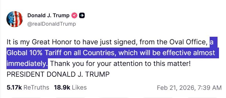 关税并未归零,特朗普20日签署新行政令,依据《1974年贸易法》第122条,对全球进口商品加征10%的临时关税,并明确该措施自2月24日起生效,为期150天。