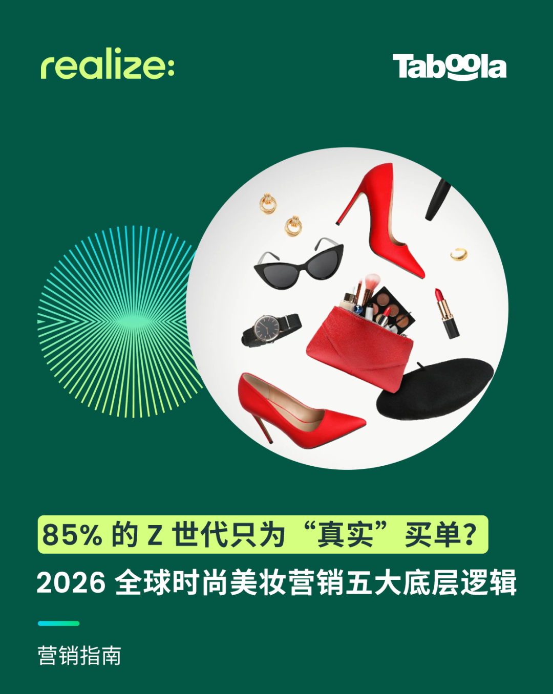 2026 年,时尚与美妆行业的营销逻辑已被彻底重写。面对日益理性的消费者、不断攀升的获客成本(CAC)以及广告审美疲劳,品牌的成功不再仅仅取决于预算规模,而在于能否在社交媒体、电商平台与开放互联网的每一个触点上,与用户构建一种深层的连接。 2026 年,品牌的目标不应是盲目追逐每一个新潮词汇,而是要有意识地建立与消费者的深度连接。 将真实性、包容性、互动性和可持续性作为营销基础,才能真正提升 ROI 并建立长期的用户信任。 Taboola 旗下效果广告平台 Realize,将通过面向不同行业的解决方案,在复杂的环境中,帮助品牌将趋势潜力转化为切实、可衡量的商业回报。 Realize 专人咨询 放大广告效果