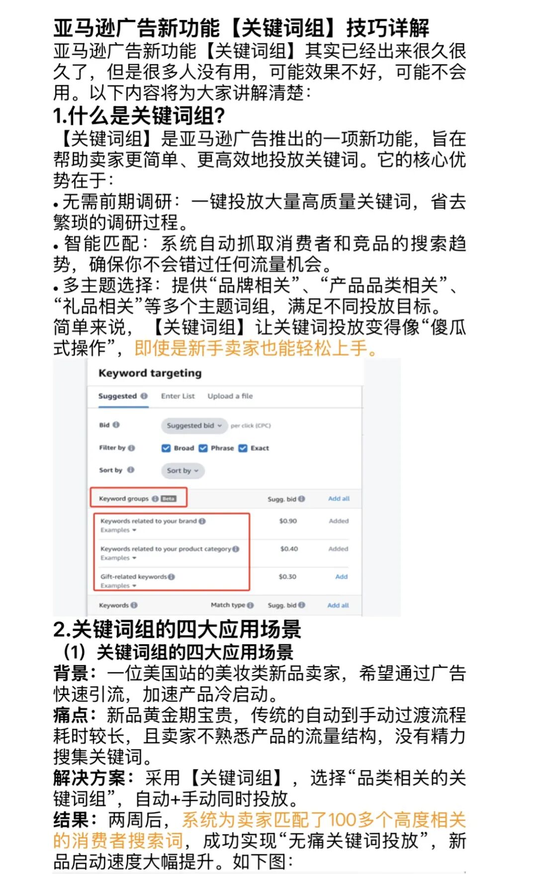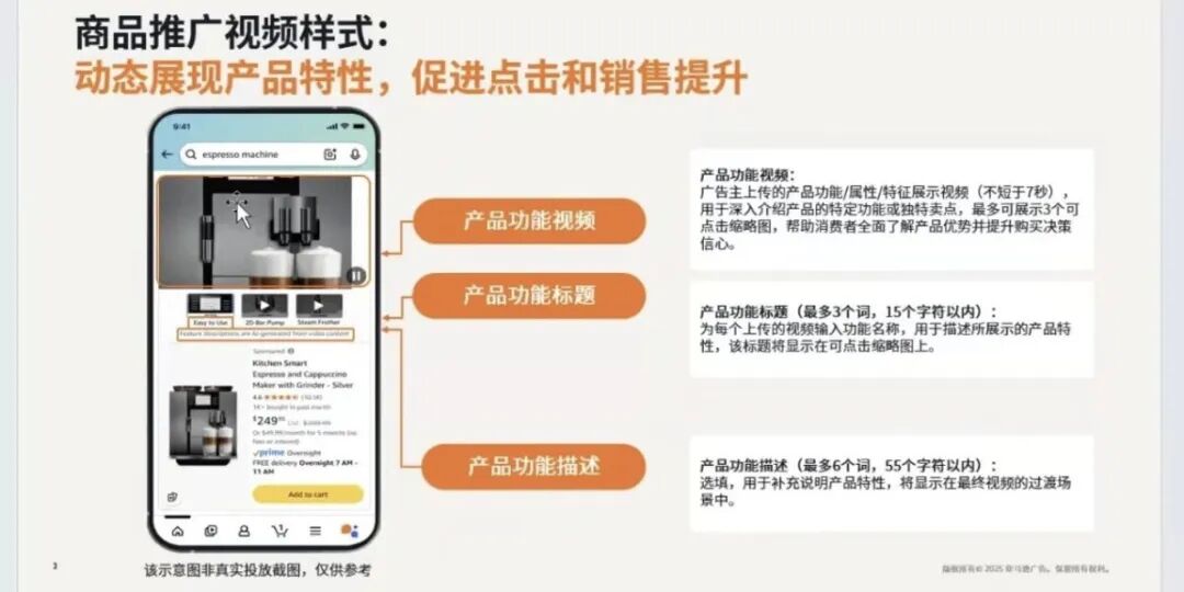 点击上面⭐星标,不错过任何一个跨境热点干货☝️ 这几天,不少卖家发现亚马逊新推出一个视频广告位,卖家反馈:终于不再是鸡肋功能了! 亚马逊最新推出的赞助商品视频 (SPV) ,这个新功能跟原先的SP广告没有本质区别,但关键是增加了视频展示能力。 卖家点进具体的广告组,在“广告投放”这一栏里,你会看到2个位置:一个放广告商品,另一个就是放视频广告的地方了 新商品推广视频有几个核心要点: 1.覆盖站点:目前仅适用于美国站; 2.视频审批:需符合亚马逊商品推广视频指南并通过审批( 大致需要48-72 小时的审批时间); 3.视频基础要求:单视频时长需要≥7 秒,可以展示1个或者多个商品功能;单商品最多上传 5 个商品视频。如果视频数超过3 个,则由亚马逊按搜索相关性则筛选其中2个视频展示。 同时,卖家需要注意,不要把它和SBV广告混淆,它们的广告位完全不同。 这个新SPV广告目前只出现在移动端广告位中,并且你添加了视频后,也未必会被展示。 官方表示,前台的图文广告和视频广告会混合出现。亚马逊的AI能识别文字和图片,还能判断你的视频内容是否符合买家的搜索意图。 当买家搜索某些特定关键词时,你的视频就可能展示出来。 据亚马逊官方测试数据显示,使用视频广告的广告主其点击率比使用图片广告高出9%。当购物者观看视频超过5秒时,其点击率更是暴增8倍。 参与内测卖家也反馈,SPV广告的点击率和转化率都比普通SP广告好很多。 确实,动态视频总比静态图片更能吸引眼球,这样对转化率有重大作用! 而且,亚马逊可能会为SPV广告推出单独的加价功能。 不过要注意,SPV视频广告的广告位加价与你原先设置的广告位、受众和B2B加价是叠加的,所以千万别把竞价加得过高。 这次,亚马逊算是推出了一个既保持原有操作习惯又能提升广告效果的功能,实在难得。 从亚马逊的角度看,这显然是他们在提升平台广告价值与买家体验之间找到的一个平衡点。 正处于旺季冲刺和年终收尾阶段的卖家来说,谁先掌握这一工具,谁就能在流量竞争中抢占先机。 - end - 亚马逊广告新功能【关键词组】技巧详解 ?卖家精灵(全网最低价) 【标准高级VIP包年78折:SNOW78】 【单人版包年72折:SNOW72】 (续费、升级都可以用) 购买地址: https://www.sellersprite.com/cn/price ?优麦云(全网最低价) 【优麦云 4折专属折扣码:snow123】 购买地址:https://www.sellerspace.com/?utm=mgkjj ?Sif(全网最低价) 【Sif 88折专属折扣码:snow123】 购买地址:https://www.sif.com/ 新购、续费、增购、升级均适用— 1 —