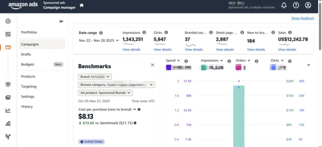 点击雪球站外关注>>免费领取>>站外电子书2.0 近期,亚马逊广告后台悄悄上线了 “Benchmarks”(基准)功能,目前主要覆盖 SB 和 SD 广告。 过去,卖家只能靠第三方软件估算,或仅能通过自身历史数据做纵向对比的难题。而且卖家做广告复盘时,常困惑的就是: “我的 CPC 是不是太高了?” “这个转化率算正常水平吗?” 而Benchmarks这个新功能,就给出了明确答案。卖家可以查看过去 30 天、每周甚至每日的细分数据,有六大重要核心数据可以清晰可见。 卖家重点关注以下六大核心指标: 品牌新客购买占比 (Percent of purchases new-to-brand) 新客购买率 (Purchase rate new-to-brand) 单次点击成本 (CPC) 点击率 (CTR)(是衡量 Listing 在搜索结果页吸引力的关键。) 单个广告订单获客成本CPA 千次曝光成本CPM 和老的 Category Benchmark(SB CBR) 报告有什么区别? 现在的 Benchmarks 功能广告类型更全,不仅是 SB,逐步扩展至 SP / SD / Sponsored TV / DSP; 可直接通过折线图对比,不用只看表格; 可通过 Reporting API 定期拉 Benchmarks 数据,接入自己的 BI 系统。 也就说,之前CBR = “下载版基准表格”,而现在的 Benchmarks = “全广告类型、实时可视化 + API 的完整对标体系”。 Benchmarks 功能入口在哪里? 登录亚马逊广告控制台后,进入 “活动管理” 页面。 Benchmarks 的核心价值是帮卖家判断数据波动的原因,下滑时判断是否运营策略有问题。 如何利用Benchmarks 来做复盘? 1.选时间 & 粒度 新品期:建议用 Daily + 最近 30 天,盯短期波动; 稳定期:用 Weekly / Monthly,看趋势即可。 2.选广告类型 & 目标 分别看:SP / SB / SD(以及可能的 Sponsored TV / DSP); 先关注:CPC / CTR / CPA / CPM,再看 NTB 相关指标。 3.在折线图里看“你 vs 类目”差距 如自己 CPC = 1.15<类目基准 CPC = 1.681,说明你的流量获取成本比大部分同行都有优势;反之,就得看是不是广告溢价设置过高了。 CTR 长期低于基准:主图 / 标题 / 价格 / Review 结构有问题,需要优先优化视觉 & USP; 4.Benchmarks 一定要结合推广阶段来看; 新品推广期:CPC 略高于类目基准是正常的;更重要是 CTR 是否能快速接近或超过类目线、CPA 是否在可接受区间; 头部稳定期:CPC、CPM 低于类目基准,CTR、高新客率优于基准,这是理想状态,一旦发现 CPC > 基准、CTR 反而低,就要警惕了 这里根据卖家反馈,整理了一套快速上手操作: 如果你现在已经在美国站投 SB / SD / SP,可以按这个顺序来用 Benchmarks: 1.锁定 1–2 个主推 ASIN 的主力 Campaign,看CPC 相对基准是高还是低? 2.先解决 CTR vs 基准的问题; CTR 明显落后 → 直接安排主图 / 标题 / 价格 / Review 结构的 A/B 测试; 用 1–2 周观察 CTR 曲线是否“爬上来”,至少追平基准线。 3.再用 CPA / NTB 指标判断“钱花得值不值”; 4.最后用 Benchmarks 看“整体策略是否健康”; - end - Slickdeals发帖的三种主流方式 (实操拆解) ?卖家精灵(全网最低价) 【标准高级VIP包年78折:SNOW78】 【单人版包年72折:SNOW72】 (续费、升级都可以用) 购买地址: https://www.sellersprite.com/cn/price ?优麦云(全网最低价) 【优麦云 4折专属折扣码:snow123】 购买地址:https://www.sellerspace.com/?utm=mgkjj ?Sif(全网最低价) 【Sif 88折专属折扣码:snow123】 购买地址:https://www.sif.com/ 新购、续费、增购、升级均适用— 1 —
