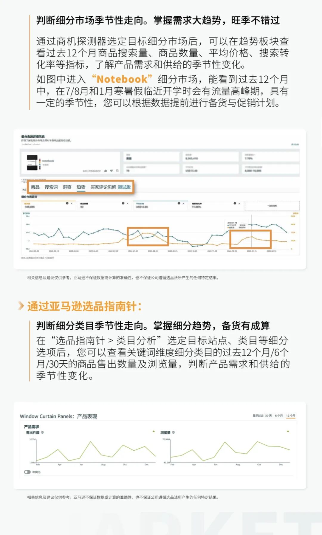 每个单词首字母大写,连词、短介词(≤4字母)小写;用阿拉伯数字拼写出测量单位。 否则字符超量(上限≤200字符含空格)将导致Listing被抑制。 卖家如何写标题两段式思路: 1.主标题:核心流量入口(30-50字符) 适用公式:品牌词(可选)+核心品类词+关键属性词(尺寸/颜色/材质) 核心:前置高权重核心词,适配Rufus优先抓取前端内容的逻辑。 2.亮点段(≤150 字符,转化助推) 适用公式:核心功能词(带数据)+ 使用场景词 + 差异化卖点 核心:用具体数据替代模糊表述,关联用户高频问答场景,帮助 Rufus 生成精准卖点标签。 同时,一定要避开严查的违规雷区: 不要全部大写字母、特殊符号和重复字词。(密集符号会被判定为“诱导点击”,且影响长尾词收录。) 不要用促销词、主观词、竞品品牌词和绝对化词汇。 不要用“最、绝对、必买等词”,亚马逊对此高度敏感,易触发夸大宣传审核。 无认证不可使用“Eco-friendly”“Anti-bacterial”等敏感词,避免判定为虚假宣传或违规品类。 - end - 亚马逊五三选品上岸最新宝典 ?卖家精灵(全网最低价) 【标准高级VIP包年78折:SNOW78】 【单人版包年72折:SNOW72】 (续费、升级都可以用) 购买地址: https://www.sellersprite.com/cn/price ?优麦云(全网最低价) 【优麦云 4折专属折扣码:snow123】 购买地址:https://www.sellerspace.com/?utm=mgkjj ?Sif(全网最低价) 【Sif 88折专属折扣码:snow123】 购买地址:https://www.sif.com/ 新购、续费、增购、升级均适用— 1 —