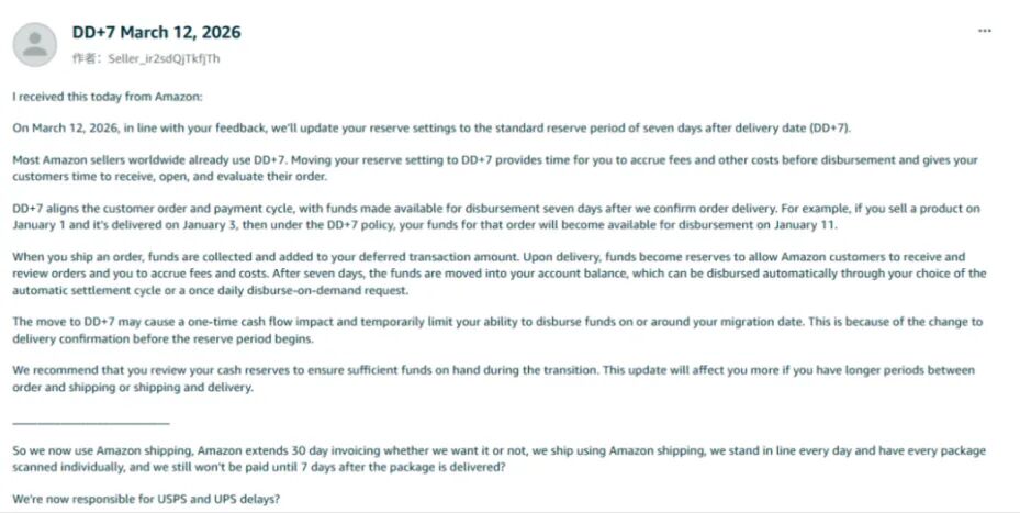 点击雪球站外关注>>免费领取>>站外电子书2.0 1.亚马逊近期再次发布最新的产品图片规范 不符合平台标准的低质量图片将面临系统自动替换、Listing被屏蔽等风险,直接影响流量与转化。 平台明确要求产品图为纯白背景,主图像素至少达到1000像素,且整体为高分辨率画质。 卖家需定期审核更新图片并制作合规检查清单,降低被替换风险。 2.亚马逊春季大促倒计时 刚开年,卖家就迎来了第一场硬仗——2026年亚马逊春季大促。 今年三大主力市场的时间安排各有不同: 北美站:3月25日-3月31日 欧洲站:3月10日-3月16日 日本站(双场168小时升级):3月3日-3月9日、3月31日-4月6日 卖家们尽快通过“卖家平台>广告>秒杀>创建新促销”路径尽快完成促销提报,并留意FBA入仓截止日期。 3.便携式电源品类合规监管升级 近期,亚马逊多站点正式实施针对便携式电源(含锂离子/锂聚合物电池产品)的专项监管政策,所有合规文件需通过第三方检测、检验和认证(TIC)服务提供商提交。 美国站和加拿大站在2026年3月12日起,欧洲十大站点从2026年3月15日起,未合规商品将被平台强制下架。 卖家需立即核查产品线并启动合规流程。 4.亚马逊严查变体评论共享 亚马逊宣布自2026年2月12日起,将不再允许功能差异显著的商品变体共享用户评价,仅保留不影响核心功能的轻微差异商品(如颜色)继续共享评价体系。 该调整旨在避免因规格差异导致的星级评分失真,过渡期将持续至2026年5月31日。 5.亚马逊严查变体评论共享 近期亚马逊再次强调,欧洲增值税强制合规政策已正式生效。 只要在欧盟国家、英国、挪威和瑞士有义务进行增值税登记,就需要上传增值税登记信息。 不合规卖家将面临销售权限或FBA功能被限制的风险。 路径:卖家平台自查“绩效通知”与“账户状况”,并按要求上传或修正您的增值税登记信息。 6.亚马逊日本站合规文件提交要求 自2025年12月25日法规生效后,亚马逊逐步要求卖家针对日本《产品安全四法》 政策内容:要求卖家提交事业备案申报的电子图片、PS标志的电子图片,完成合规备案。 7.亚马逊“DD+7”资金预留政策 自2026年3月5日起在全球范围内(德国站为3月12日)实施DD+7,新规要求订单确认送达后7天才释放货款,多数订单实际回款将延长至8-9天。 建议卖家采取措施降低风险,如使用完整物流追踪、评估采用FBA、调整供应商账期等。 8.亚马逊将终止共享库存政策