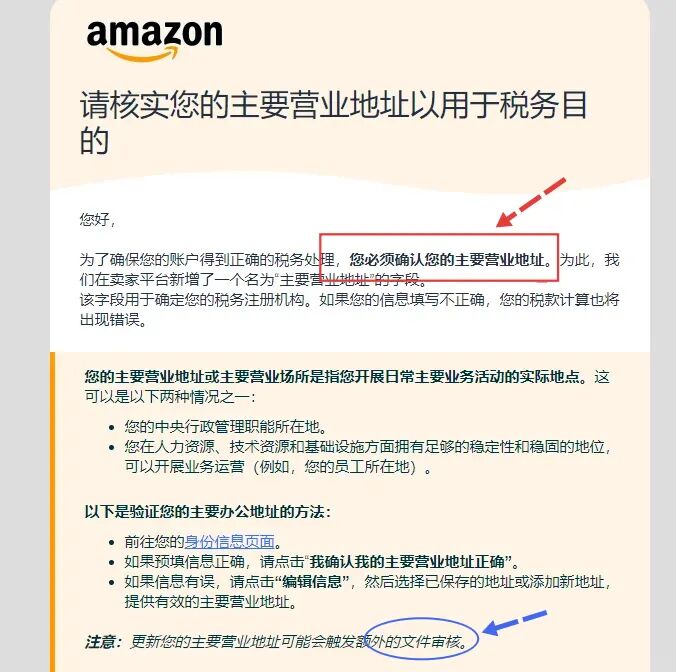 点击雪球站外关注>>免费领取>>站外电子书2.0 在大量卖家收到的通知中: 要求卖家必须完成确认账户资料里新增的「主要营业地址」字段,否则将直接影响税务处理与账户合规。 这个新增的信息是什么? 亚马逊在官方通知里给出了明确界定:主要营业地址是你开展主要日常业务活动的实际场所。 也就是你真正管店,办公运营的地方,不是你公司的法定注册地址或秘书地址。 很多卖家会容易混淆,这里说清楚: 公司注册地址:公司在官方机构登记的法定地址,常为秘书地址、挂靠地址。这里不一定实际办公,仅用于法律登记。 主要营业地址:真实办公、运营业务的实际地点。必须体现业务真实发生地,是平台判断合规的核心依据。 而此次主要也是用于验证卖家是否有实际业务地址,准确判断卖家的代扣代缴义务、强化账户合规。 为防止卖家通过注册空壳欧盟公司来偷税漏税。 同时,也是为配合欧盟及英国的税务规定 —— 卖家的增值税登记信息(含地址)必须与税务机构数据库一致。 注意:若信息填写有误不导致税费计算偏差,大大提升后续账户审核风险。 目前,建议卖家提前准备好证明地址的材料。(如近90天内的银行对账单、水电煤账单、网络话费账单等) 无论填哪个地址,必须要提供对应的证明文件,否则后续审核极易失败。 若预填地址与实际经营场景一致,直接勾选确认框即可完成操作; 若地址有误,则点击编辑选项,选择已保存的有效地址或添加新的实际经营地址后提交确认。 同时,有部分卖家反馈,会触发额外的账号KYC审核。 所以这里要注意:操作要谨慎,且确保新地址能提供完整证明材料。 但目前存在一种情况:公司注册在香港,但实际办公在深圳(或内地其他城市)。 很多卖家对此特别头疼,怕填内地的会影响香港公司的合规性。 若填写无法提供证明的香港秘书地址,万一后续审核触发,反而会面临更大风险。 对于欧洲卖家来说,这是必须尽快完成的操作。 随着欧盟对跨境电商监管的日益严格,卖家务必在收到通知后及时核实地址,保障店铺正常运营。 - end - 亚马逊SB广告打造爆款核心策略 ?卖家精灵(全网最低价) 【标准高级VIP包年78折:SNOW78】 【单人版包年72折:SNOW72】 (续费、升级都可以用) 购买地址: https://www.sellersprite.com/cn/price ?优麦云(全网最低价) 【优麦云 4折专属折扣码:snow123】 购买地址:https://www.sellerspace.com/?utm=mgkjj ?Sif(全网最低价) 【Sif 88折专属折扣码:snow123】 购买地址:https://www.sif.com/ 新购、续费、增购、升级均适用— 1 —