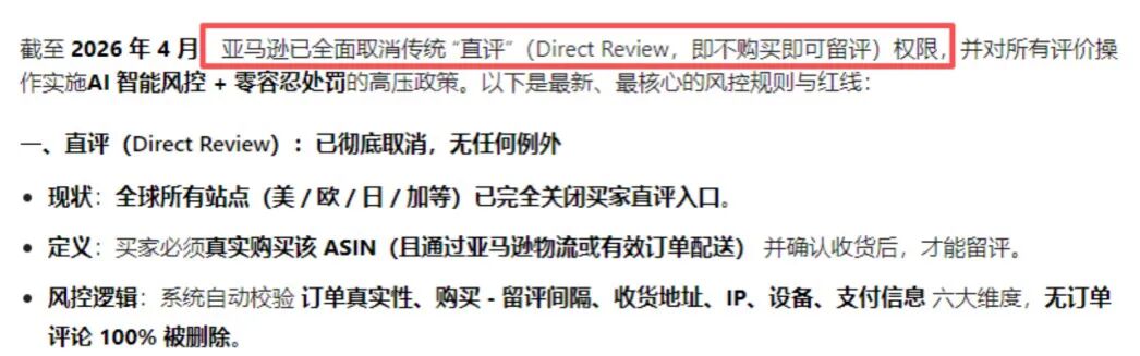 点击雪球站外关注>>免费领取>>站外电子书2.0 近期,有一则“4月8日起亚马逊将正式取消直评”的消息,在卖家朋友圈与社群持续刷屏。 这次传闻一出来,更是让不少卖家坐不住,甚至还有人连夜找渠道囤直评号?! 对新手卖家来说,首先要知道:直评是什么? 直评是指消费者无需在亚马逊平台购买商品即可直接留下的评论,是亚马逊新品快速获取评论、提升权重的重要手段之一。 在之前,直评就是卖家的起步神器,新链接全靠它撑场面。 此次消息传出,虽未明确公告,但对于直评,亚马逊一直在不断收紧政策: 直评权重清零:切断直评对排名的核心价值,让依赖直评的运营模式失效。 限制直评存活数量:单个ASIN直评上限被严格控制,减少直评对页面的干扰。 全面清理:彻底消除灰色操作空间,直评越来越合规。 此次传出“取消直评”,本质还是平台打击“利用直评漏洞扰乱市场”的违规竞争行为。 对中小卖家而言,这无疑是运营门槛的显著提升,但政策收紧能减少灰色操作带来的不公平。 有看到市场上仍然有人在兜售“直评号”:“一个直评号25元,一个父体最多可以上4条直评。” 还是想提醒各位卖家:先不说直评功能是否会被取消,即便目前还能用,这类通过非正规渠道上的直评,被系统扫描删除的概率极高。 一旦被亚马逊判定为操纵评论,轻则警告限流,重则直接封号。