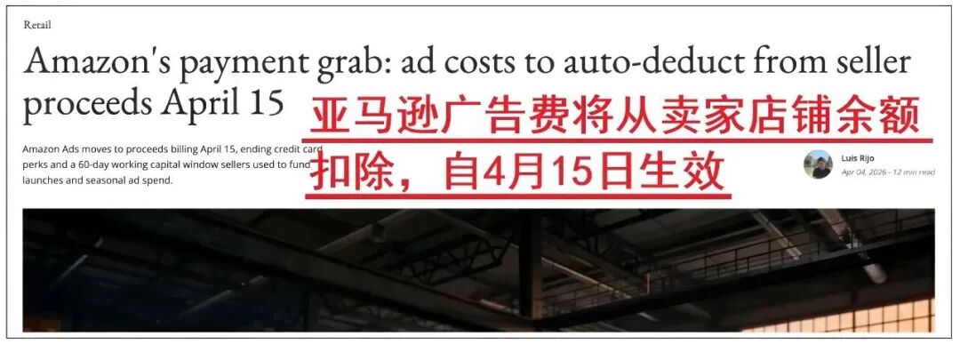 抗议指令很明确:4月15号当天,所有参与卖家一律暂停亚马逊站内所有广告投放,还要晒出当天广告零支出的截图! 就是为了向亚马逊施压,讨个说法! 这并非局部的小规模卖家抱怨,而是跨境电商行业有史以来,规模最大、影响力最广的卖家联合反抗行动之一。 从当前动态来看,4月15日的停投行动已进入倒计时,参与卖家纷纷制定停投计划,同步联动行业资源扩大抗议声势。 而亚马逊官方尚未对此作出任何回应,平台与卖家之间的正面博弈,一触即发。 据通知,自4月15日起,北美、欧洲、日本等主流站点将强制默认“账户余额优先扣费”。 也就是说,买家订单回款后,亚马逊将优先扣除广告费用,剩余资金才会进入卖家可提现账户,彻底掐断卖家最后的资金缓冲空间。 亚马逊官方称是为了“优化结算流程、降低交易风险”。但真正的答案很明显,亚马逊为了省下一笔巨额手续费。 之前:卖家在亚马逊平台上投放广告,支付方式相对灵活多样,可以选择信用卡支付/银行转账/第三方平台等多方式。并且支付周期也可以根据自身情况进行协商调整。 但此次:亚马逊强制要求卖家使用其指定的支付方式,这无疑大大限制了卖家的选择空间。 “以前是花银行的钱投广告,现在是边赚钱边被平台扣钱。”卖家吐槽 这不明摆着,亚马逊省下的每一分钱,都是从卖家口袋里硬生生夺走的利润;平台的资金效率提升,换来的是卖家生存空间的不断压缩。 亚马逊支付新规对卖家带来的影响很明显? 1.限制了自身的资金运作灵活性。 据统计,有超过70%的卖家对新的支付方式表不满,而且亚马逊还将广告支付的周期大幅缩短。(从30天缩短15天) 这对于许多卖家来说,无疑是一场资金链的“大考验”。 其亚马逊指定的支付方式手续费比卖家之前使用的平均手续费高出了约3个百分点。 对于广告投放金额较大的卖家来说,这3个百分点的手续费差异意味着巨大的成本增加。 - end - 亚马逊账号安全审核清单 上下滑动查看完整服务报价 ?卖家精灵(全网最低价) 【标准高级VIP包年78折:SNOW78】 【单人版包年72折:SNOW72】 (续费、升级都可以用) 购买地址: https://www.sellersprite.com/cn/price ?优麦云(全网最低价) 【优麦云 4折专属折扣码:snow123】 购买地址:https://www.sellerspace.com/?utm=mgkjj ?Sif(全网最低价) 【Sif 88折专属折扣码:snow123】 购买地址:https://www.sif.com/ 新购、续费、增购、升级均适用