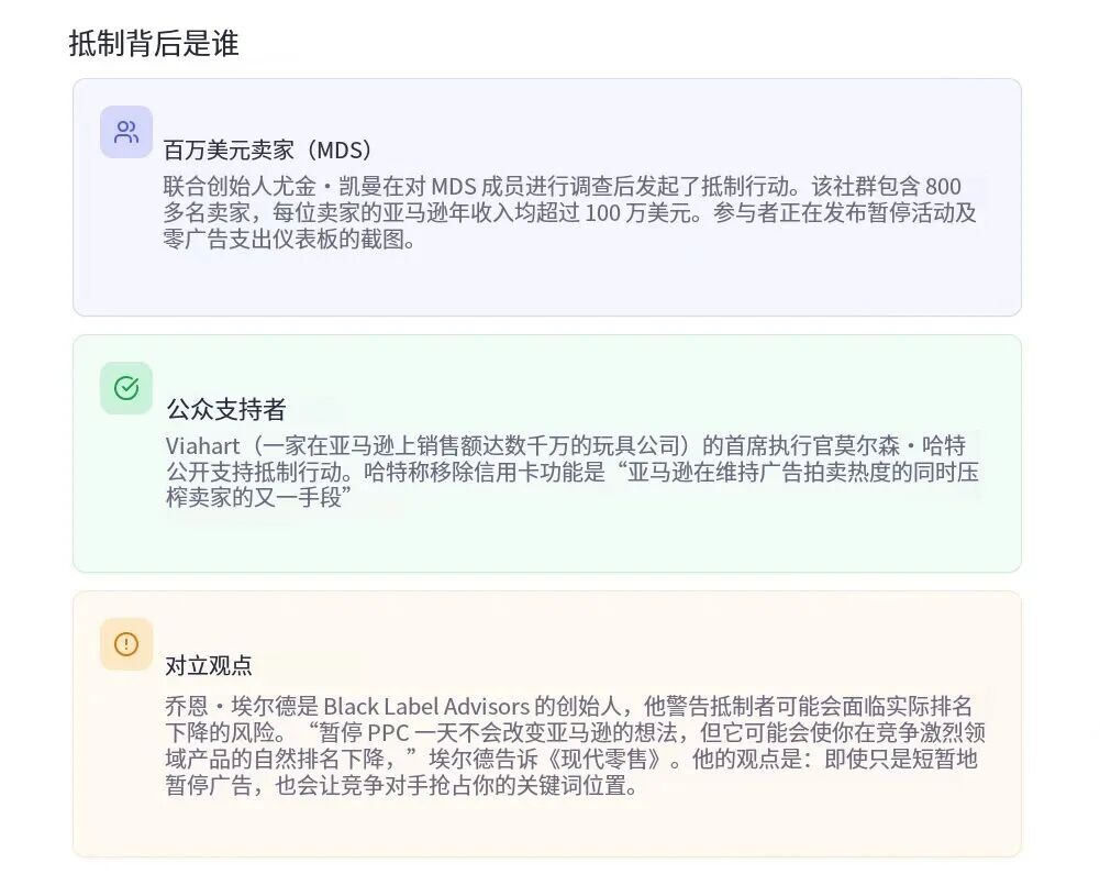 点击雪球站外关注>>免费领取>>站外电子书2.0 引起跨境圈震动的卖家集体抗议事件有了最新进展,随着阵势的越来越大,亚马逊终于就此事做出了反馈! 原定于4月15日执行的广告付款方式变更,推迟至2026年8月1日生效! 原文如下:"根据我们收到的反馈我们将这一变更推迟至2026年8月1日,以便给这一群广告商更多时间来准备。” 同时亚马逊补充,目前多数广告商已在使用账户余额支付,卖家也可选择发票付款,按月出账享受30天账期。 若按照之前亚马逊的通知,是自4月15日起,将取消卖家广告支付选择权,强制默认从店铺账户余额中优先扣除广告费。 此前变动遭到卖家集体强烈反映! 一旦施行,将打破卖家早已形成稳定的资金周转模式:通过信用卡支付广告费,有30天信用卡免息期➕平台30天回款。卖家能有60天的无息资金周转窗口来缓解运资金压力。 除此之外,各银行信用卡支付的返现也是一笔实打实的收益; 现在亚马逊将变更推迟到8月1日,是卖家取得了胜利吗? 并没有! 在亚马逊通知的后面,还有这么一段话: 意思是“本次更新仅适用于我们已直接联系的少数广告商。” 也就是说,只是延期,不是取消!且针对部分卖家,并非全部卖家! 据悉,抗议发起方尤金·海曼也是第一时间发推喊话回应一-“不要妥协!这算不上胜利,抗议行动会持续进行!” 此次行内对卖家的大规模抵制看法不同: 支持方认为,集体发声能持续施压,倒逼亚马逊重新考量新规对卖家的影响,争取更合理的政策; 反对方则提醒,卖家暂停广告会导致产品搜索排名下滑、市场份额被竞品抢占,甚至有担心亚马逊对参与抵制的卖家进行秋后算账。 也有业内人士客观表示,这场风波是亚马逊与卖家之间经营博弈的缩影,并非只是政策调整: 平台不断试探卖家的承受底线,将重构与卖家之间的利润分配结构,寻求双方利润的平衡点; 卖家群体长久积压的反抗,不再被动接受平台规则,通过集体行动参与规则博弈,以往单纯的卖家交流社群,逐渐转变能与平台抗衡的资本。 这段缓冲时间内卖家能做什么? 虽然有4个月的缓冲时间,卖家还是要抓住这段窗口期,提前梳理财务流程、优化现金流规划: 1️⃣:提前检查并绑定有效备用信用卡,保证额度充足; 2️⃣重新规划资金结构,合理控制广告预算; 3️⃣砍掉广告低效投放,提升广告ROI; 4️⃣重新核算利润模型,将信用卡返现“损失计入经营成本。 - end - 亚马逊广告系列之 否定词及报表出现ASIN怎么处理 上下滑动查看完整服务报价 ?卖家精灵(全网最低价) 【标准高级VIP包年78折:SNOW78】 【单人版包年72折:SNOW72】 (续费、升级都可以用) 购买地址: https://www.sellersprite.com/cn/price ?优麦云(全网最低价) 【优麦云 4折专属折扣码:snow123】 购买地址:https://www.sellerspace.com/?utm=mgkjj ?Sif(全网最低价) 【Sif 88折专属折扣码:snow123】 购买地址:https://www.sif.com/ 新购、续费、增购、升级均适用