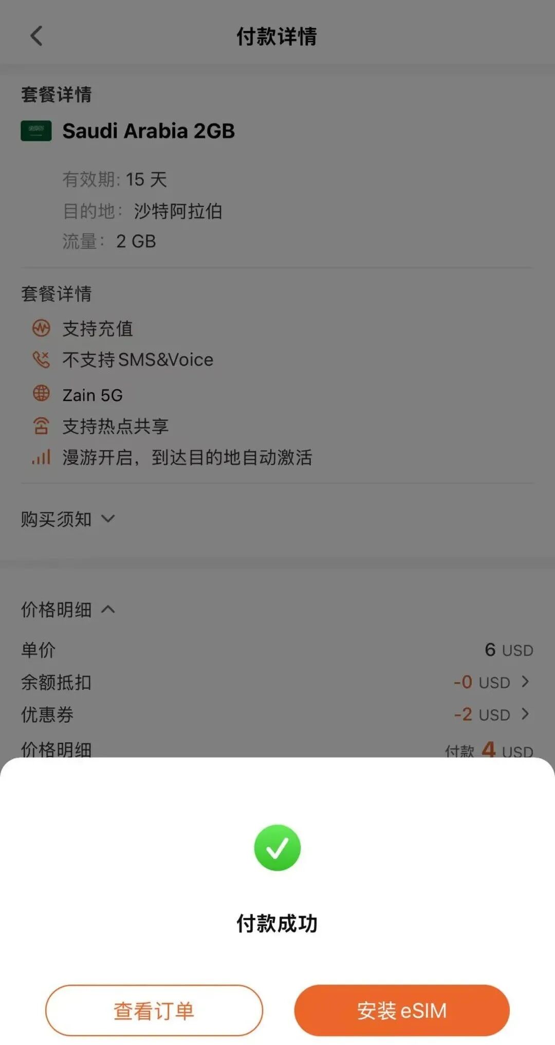 1. 激活触发:到达目的地后,启用这个eSIM,手机连接到当地网络,就会自动激活(套餐时长从激活后开始计算);