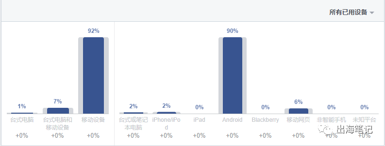 从Facebook insight里面看,使用安卓设备的网民占大多数: