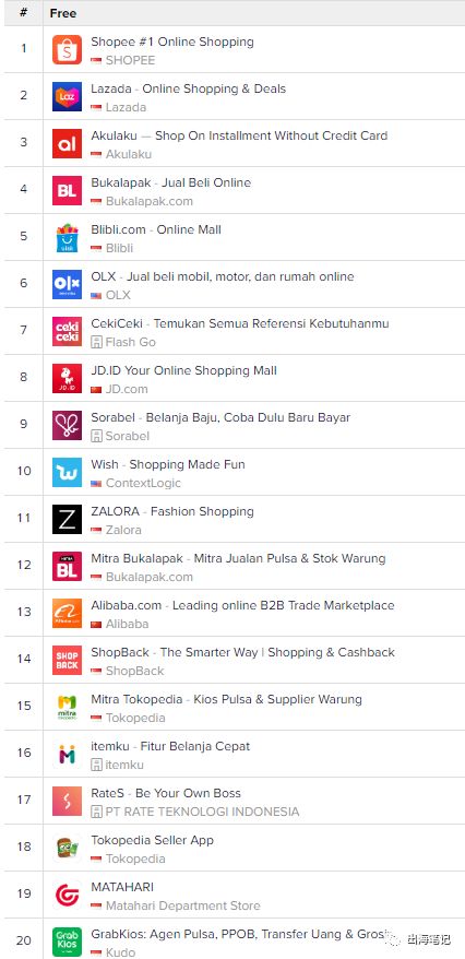 排在前面的还是Lazada那几个巨头,不过值得注意的是,中国出海印尼的主要有京东印尼、棒谷、小米、速卖通。想入手印尼电商的同学不少,在这里还是有必要介绍一些这几家重点公司: