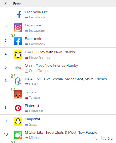 Facebook, Instagram, WhatsApp, LINE,中国出海YY系的Hago、Bigo, 探探风头正猛。
