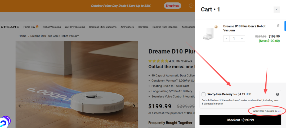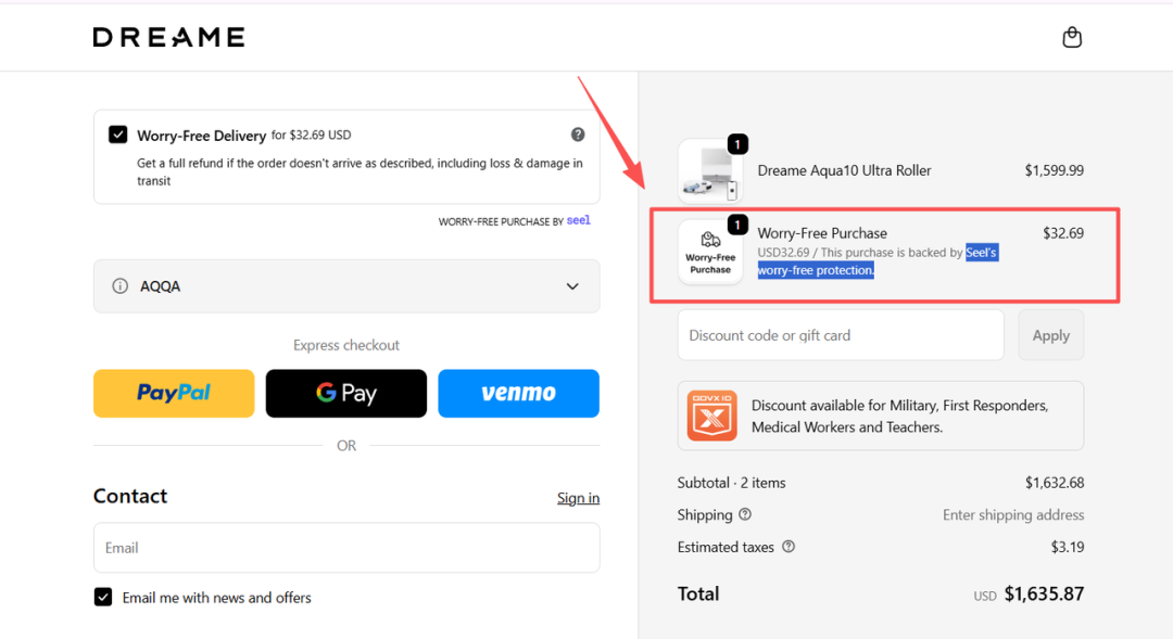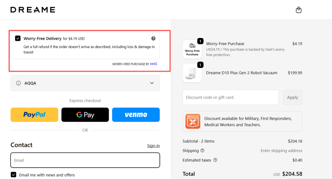 因为平时比较喜欢Dreametech这个品牌,所以会经常去看看该品牌的网站。恰巧发现Dreametech(追觅科技)的独立站结账流程提供了一个教科书级的范例以增强用户信任--那就是Seel无忧运输保障。
