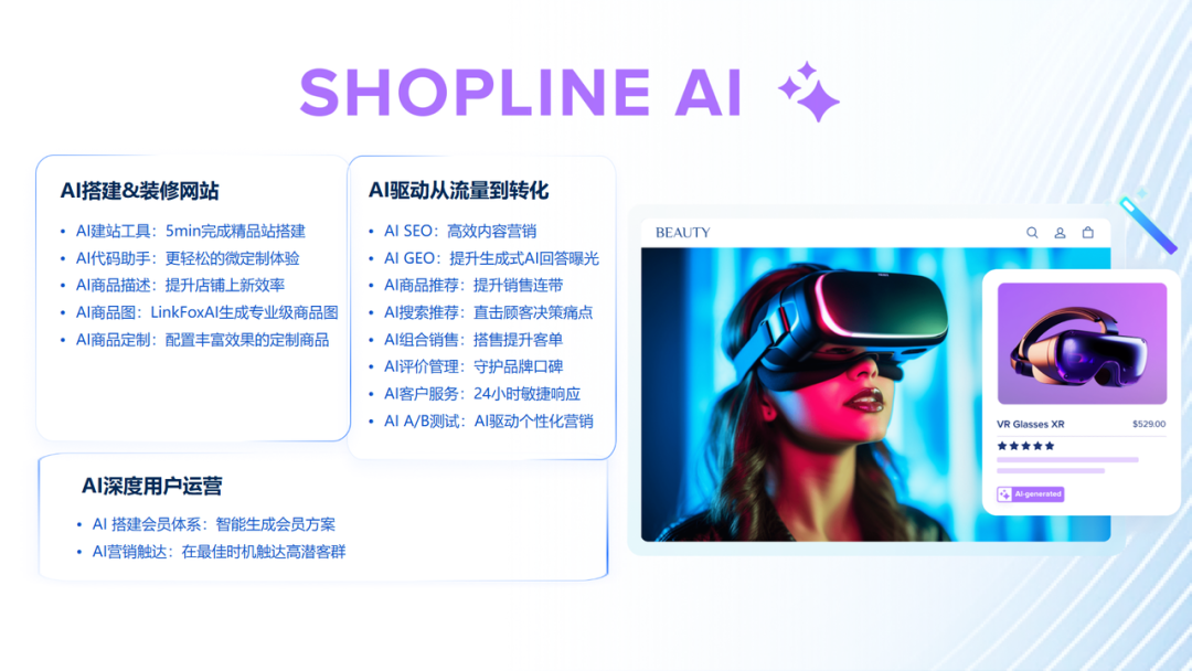 ?本期重点更新: SHOPLINE Developer MCP 全新上线,解锁应用开发新速度! AI 工具可以通过该 MCP 服务器搜索 SHOPLINE 文档、获取 API 的参数信息和根据技术文档编写、修改代码。 什么是MCP 在传统的电商开发中,处理复杂的 API 和编写重复代码往往是效率的绊脚石。当创意被困在厚厚的技术文档里,流失的是稍纵即逝的市场商机。虽然 AI 已能辅助编程,但由于无法实时掌握平台最新规范,AI 常会产生“幻觉”——生成看似完整实则无法运行的代码,甚至因信息过时埋下店铺运营安全隐患。 SHOPLINE 全线上线的 Developer MCP(Model Context Protocol) 旨在缓解这一难题。它是一套连接 AI 与SHOPLINE 官方开发文档的通用标准协议,能让不同 AI 工具都能读懂 SHOPLINE 官方技术语言。 配置 MCP,让 AI 编程从“闭卷”走向“开卷” 过去, AI 宛如一名闭卷考试的学生,尽管能力强大,遇到专业难题仍需开发者介入繁琐的资料检索、手动同步背景信息。 现在, AI 进化为开卷实战的高手。SHOPLINE 官方技术文档成为了它触手可及的实时参考,它能根据指令自主检索、精准引用。 由此,开发者彻底告别了在文档中心与 AI 对话窗口之间的频繁切换。配置 MCP 后,AI 即可直接完成文档调阅与 API 对接,让开发真正回归业务创新本身。 SHOPLINE 开发者 MCP 现已正式上线 在 Cursor、Claude 等 AI 工具中添加该服务器,AI 将立即化身“SHOPLINE 官方开发专家”,助您以前所未有的速度构建应用: 更精准: 基于官方实时规范,从源头规避代码 Bug。 更高效: 消除技术调研盲区,大幅缩短定制需求上线周期。 更专业: 让 AI 成为您最资深、最即时的技术顾问。 01 从盲目摸索到精准规划 过去,面对复杂定制需求,技术团队往往需要耗费数天反复查阅文档、验证接口可行性。现在,MCP 能将您的 AI 编程工具升级为一名深度理解 SHOPLINE 技术规则的专业助手。 只需输入构思,AI 自动调取官方文档并拆解复杂难题,这让技术人员能够释放精力,聚焦于核心逻辑优化。 面对您的需求,AI 会给出明确结论:“SHOPLINE 最新接口已支持该功能,最佳实现路径如下……” 技术可行性上更果断的反馈,驱动更敏捷的决策,确保您的商业创意更快转化为市场竞争力。 02 从纸上谈兵到即刻实战 应用开发的节奏从“天”级压缩至“小时”级。开发者无需从零开始编写基础代码,直接下达指令如“帮我写一个 SHOPLINE 的自定义折扣插件”,AI 便能实时产出准确代码。 开发周期的极致缩减。意味着功能可以更早步入市场——早一天上线,便能为店铺多抢占一天的流量与转化。 即便 API 规则更新,AI 工具也能实时同步官方规范,规避因使用过时信息编写代码导致的下单卡顿或数据丢失等风险。让店铺在保持高频迭代的同时,守住运营的稳定性。 03 从人力消耗到高效创新 开发者遇到技术难题不再需要花大把时间调试和查资料,AI 就像个资深架构师在旁边随时指导,为团队注入官方经验。 API 通常极其复杂,MCP 让 AI 替开发者去记这些参数,并完成繁杂的文档深度阅读与理解任务,降低了技术门槛。即便是普通开发者,也能在 AI 的指导下处理更高难度的工作。 AI 产出代码帮助减少繁琐的手动编码与重复调试,加速错误定位和修复,提高开发应用的效率。 同样的预算,商家可以完成更多的定制功能,或者以更轻巧的团队规模支撑更庞大的业务体系。技术投入产出比(ROI)从此实现质的飞跃,把每一分预算,都花在真正的业务创新上。 接入 MCP 能带来什么? 为开发者接上“外挂大脑”: 它消除了死记硬背 API 的负担和反复查阅文档的枯燥,让您从繁琐的重复劳动中解脱,将精力投入到最具挑战性的业务逻辑中。 为商家加速生意增长: 它打破了技术研发的人才瓶颈与时间壁垒,降低了定制化的资金门槛。并确保您的商业创意能被低成本、高效率地实现,让技术真正成为驱动生意的硬实力。 04 拥抱 AI 时代 SHOPLINE 陪您跑在最前面 SHOPLINE 持续推动 AI 技术在电商场景的深度落地,助力商家赢在未来。目前,我们已通过 AIGC 能力为商家提供智能客服、AI建站与代码微定制、商品描述与邮件内容自动生成等一站式智能解决方案,显著提升运营效率。 同时,SHOPLINE 将持续聚焦商品结构化数据深度优化,精准布局搜索引擎及 AI 流量生态,帮助商家的产品能精准切入搜索引擎与 AI 搜索(如 ChatGPT、Google AI Mode)的推荐路径,抢占 AI 时代的流量先机。并且,通过持续优化多语种与多货币的深度本地化适配,提升品牌在特定区域 AI 检索中的权重,助力商家在目标市场获得更高频、更优先的曝光。 SHOPLINE 正持续拓宽 AI 生态边界,通过接入更丰富的第三方 AI 工具,和在 AI 赋能上的持续技术投入,不断探索电商场景的智能最优解,助力商家在多变的商业环境中锁定增长机遇。具体信息可以点击上图查看往期文章:《AI浪潮席卷跨境战场,SHOPLINE智能生态重塑变革之中的增长新格局》,了解更多 SHOPLINE AI 增长利器。